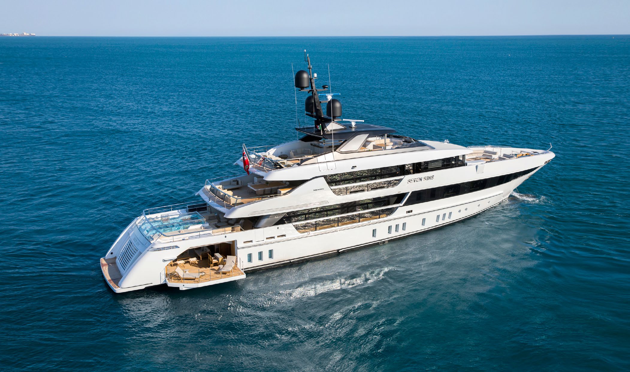 SEVEN SINS combines relaxation, wellness, and entertainment with its extensive onboard amenities. From a stunning beach club with fold-down balconies to a glass-bottom pool with Jacuzzi functionality, every aspect is tailored for ultimate enjoyment. The yacht features a fully equipped gym, spa facilities, and multiple indoor and outdoor dining areas. The state-of-the-art entertainment systems and comprehensive selection of water toys ensure endless fun for guests of all ages.