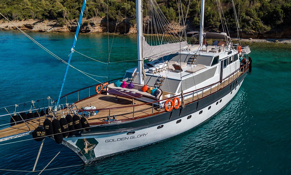 GOLDEN GLORY is a 26-meter gulet built in 2000 and more recently refitted in 2022, she offers a brilliant, great value for money yacht charter experience for up to 12 guests who can be accommodated for in 6 en suite cabins. She also provides a good amount of space around the yacht where guests can spend their time such as the saloon area with all of its facilities, the spacious fly deck, as well as the outdoor cushioned seating area at the rear of the yacht, and the alfresco dining area which is also located at the rear of the yacht. GOLDEN GLORY comes with a fantastic 4-member crew who are very experienced, highly trained, and always provide a great service and ensure that the yacht is always very well maintained.