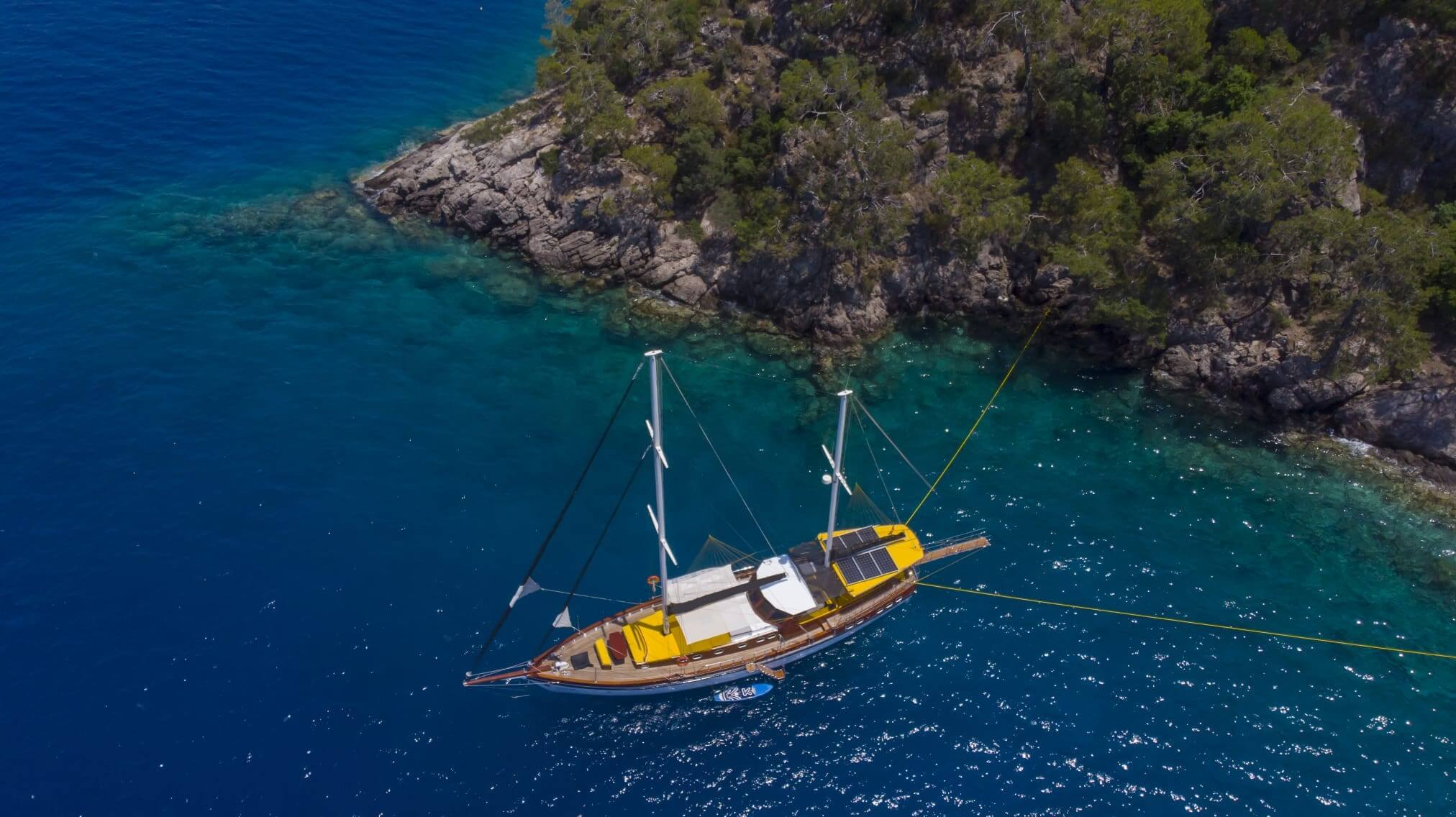 Hulyam 1 can accommodate up to 10 guests in its 5 double cabins, each with its own ensuite facilities. The cabins are spacious and beautifully designed, with large windows offering plenty of natural light and stunning views of the sea. Each cabin comes equipped with air conditioning, high-quality linens, and towels to ensure a comfortable and enjoyable stay.